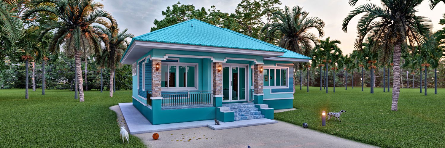 แบบบ้านชั้นเดียว 2ห้องนอน 1ห้องน้ำ ห้องครัว ห้องโถง เป็นทรงบ้านที่ปลูกสร้างได้ประหยัดค่าใช้จ่าย งบก่อสร้างน้อยพื้นที่ใช้สอยครบ