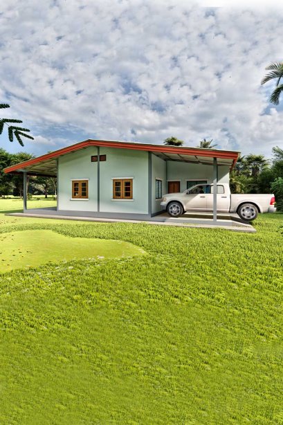 แบบบ้านชั้นเดียว 2ห้องนอน 1ห้องน้ำสำหรับคนงบน้อยมากแต่ต้องการพื้นที่ใช้สอยครบและสามารถต่อเติมได้ในอนาคต