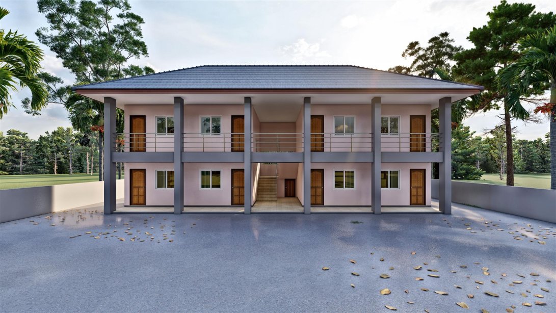 ห้องเช่า2ชั้นขนาดห้องกว้าง 3.50 เมตรลึก 7.50 เมตรทรงหลังคาปั้นหยา สไตล์โมเดิร์น พื้นที่ใช้สอยในห้อง 26.00 ตารางเมตร ทรงหลังคาชุดนี้เป็นปั้นหยา