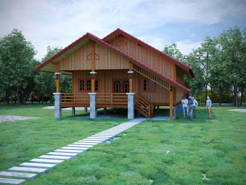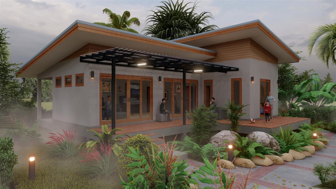 แบบบ้านเกษตรเกาะพะงันแบบมีห้องครัวต่อหลังบ้าน 2ห้องนอน 1ห้องน้ำ แบบบ้านอยู่สบาย ยกพื้นสูง 1 เมตร แบบบ้านสไตล์โฮมสเตย์