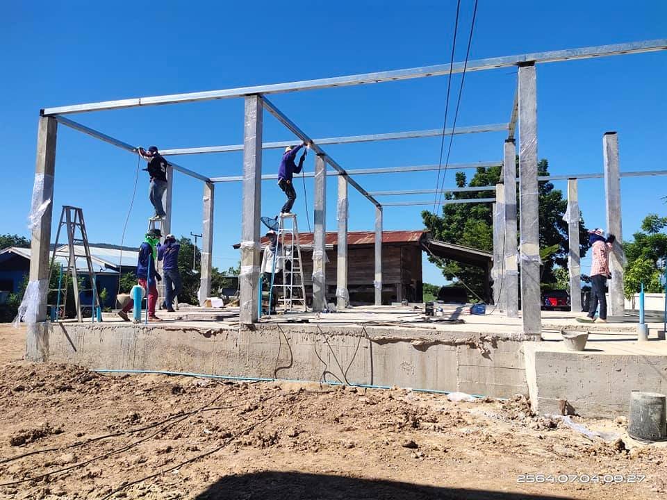 ตัวอย่างการขึ้นโครงสร้างหลังคาเหล็กซี ชุบกัลวาไนซ์ จะมีรอยเชื่อมที่ต้องเก็บสี ทำงานได้สะดวกรวดเร็วประหยัดเวลาค่าก่อสร้างมากมาย ชุดนี้เป็นการเริ่มขึ้นอะเสของโครงสร้างหลังคาทรงปั้นหยา