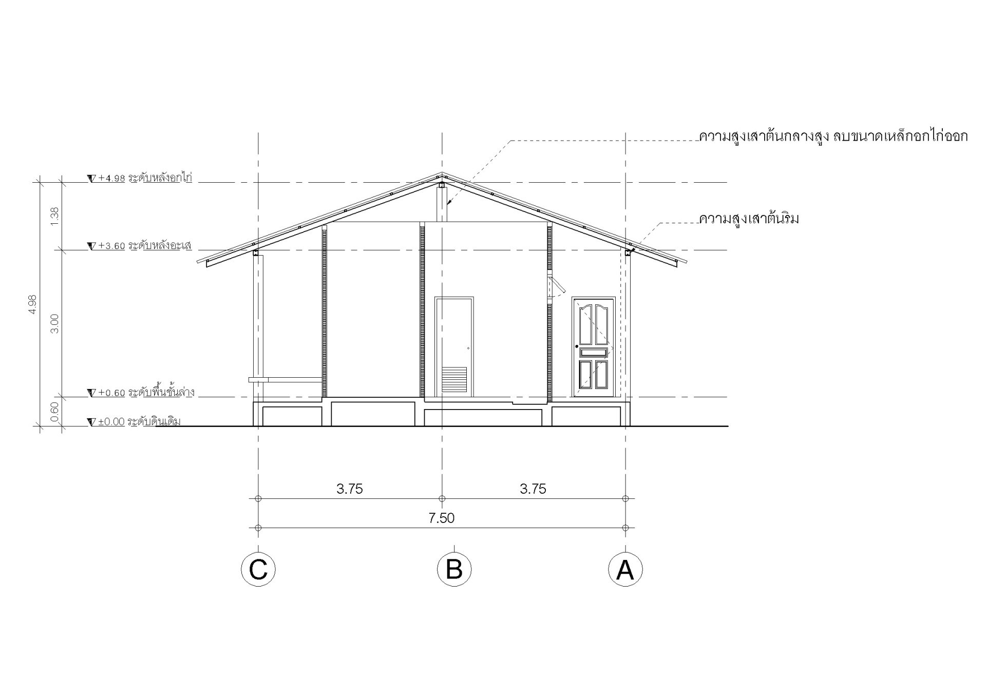 มาถึงเสากันบ้างครับ บ้านประหยัดจะมีแนวคิดเรื่องความสูงของเสาที่เราควรศึกษา เนื่องจากว่าคนส่วนใหญ่เคยชินกับการปรับความสูงหลังคาด้วยโครงสร้างเหล็กและมีอะเสวงบนหัวเสา และเนื่องจากทรงหลังคาจั่วนี้มีความสูงดั้งที่อยู่ตรงกลางและลาดเอียง 2ฝั่งจึงทำให้เราสามารถใช้ความสูงของเสาในการวางอกไก่เลยไม่ต้องมีอะเสทำให้ประหยัดค่าเหล็กหลังคาไปได้เยอะเลยทีเดียว
