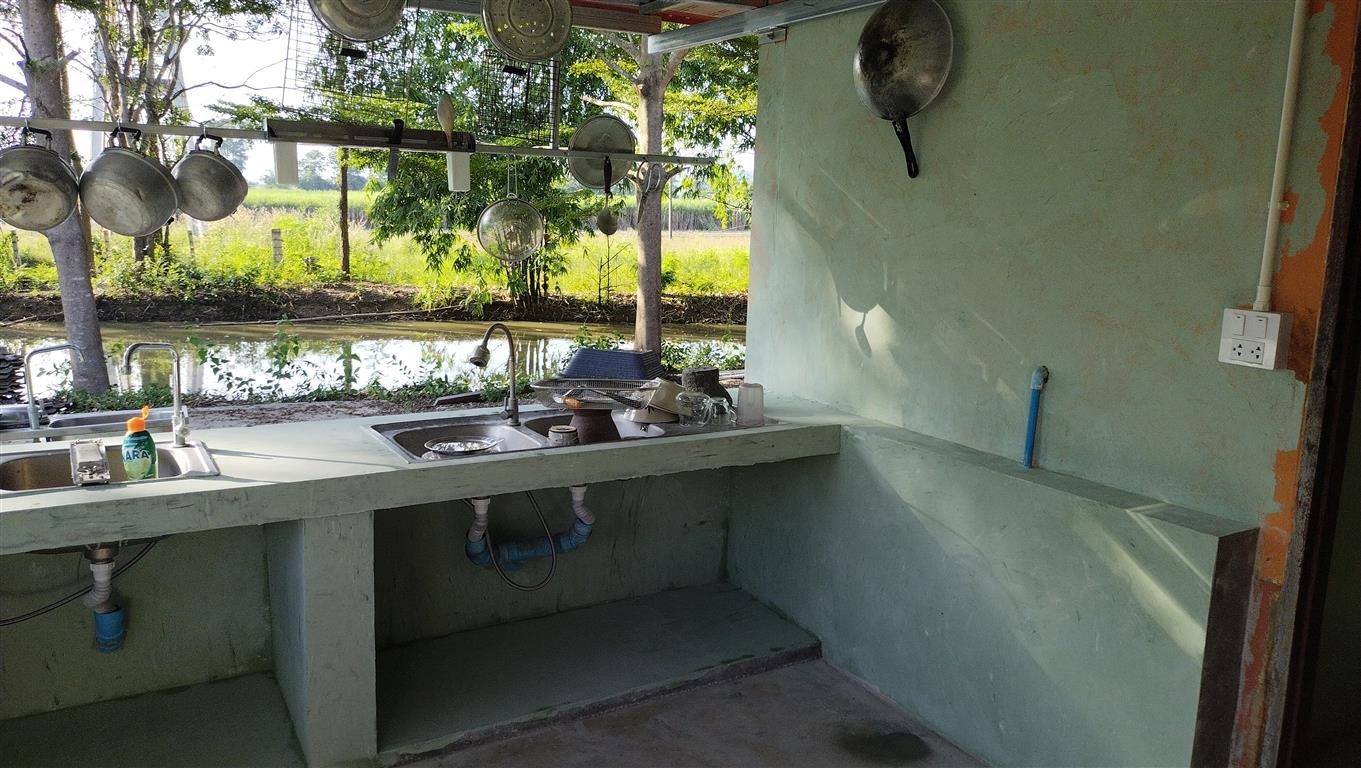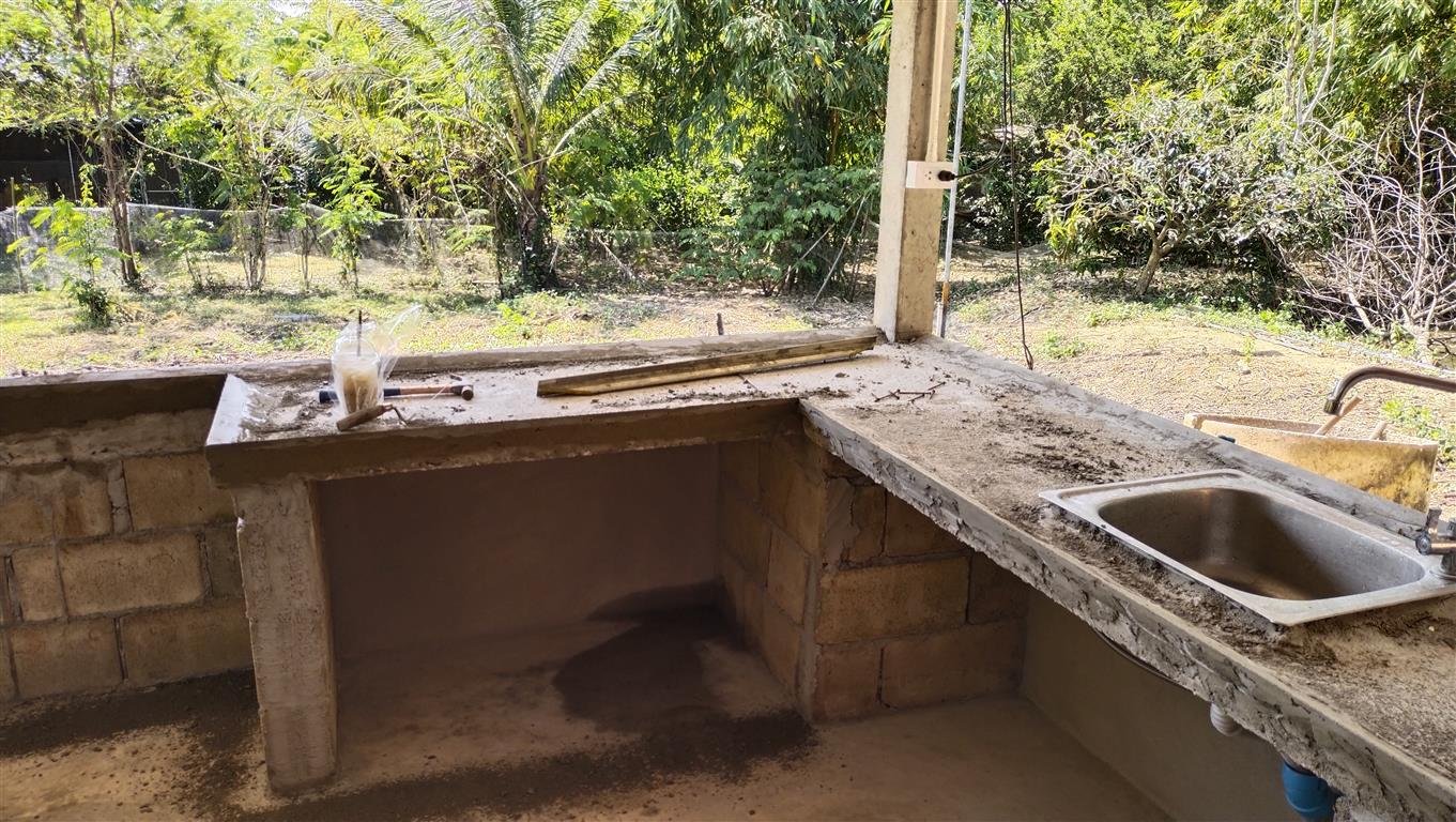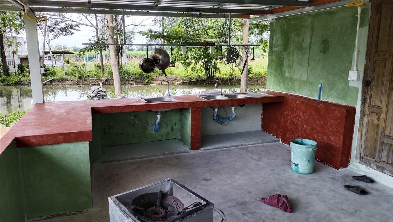 ต่อเติมครัวไทยหลังบ้านพร้อมเคาน์เตอร์ต้นทุนต่ำ เน้นทำเองเป็นหลัก ด้วยกำลังและเงินทุนที่ประหยัด เนื่องจากครัวเดิมที่อยู่ในบ้านนั้นอึดอัดเล็กและไม่ระบายอากาศ เพื่อความสะดวก สะอาดในการใช้งานครัวและเพื่อเป็นการช่วยกันล้างจานในขณะกินข้าวเสร็จผมเลยวางแผนไว้ว่าต้องเป็นครัวไทย เน้นโล่ง โปร่ง มีอ่างล้างจาน 1 จุด อ่างล้างผัก 1จุด และอ่างล้างจานสัตว์ 1 จุด ผมก็เลยวางแผนทำงานไปตามความต้องการ
