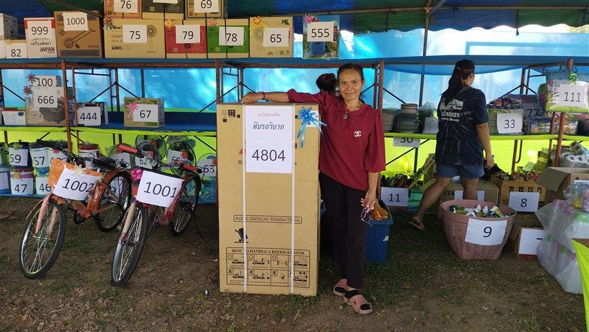 ชาวบ้านก็ช่วยกันหาราวงวัลมัจฉาพาโชคมากันเยอะเลย ทีเดียวรวมทั้งผู้ใหญ่บ้านด้วยที่ต้องหาสิ่งของมาจัดงาน เพื่อเป็นทุนให้กับวัดของเรา ในการจัดงานครับ
