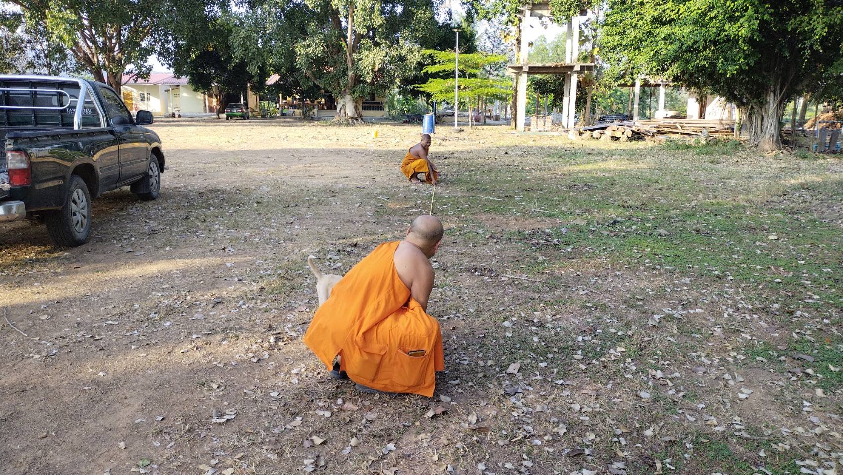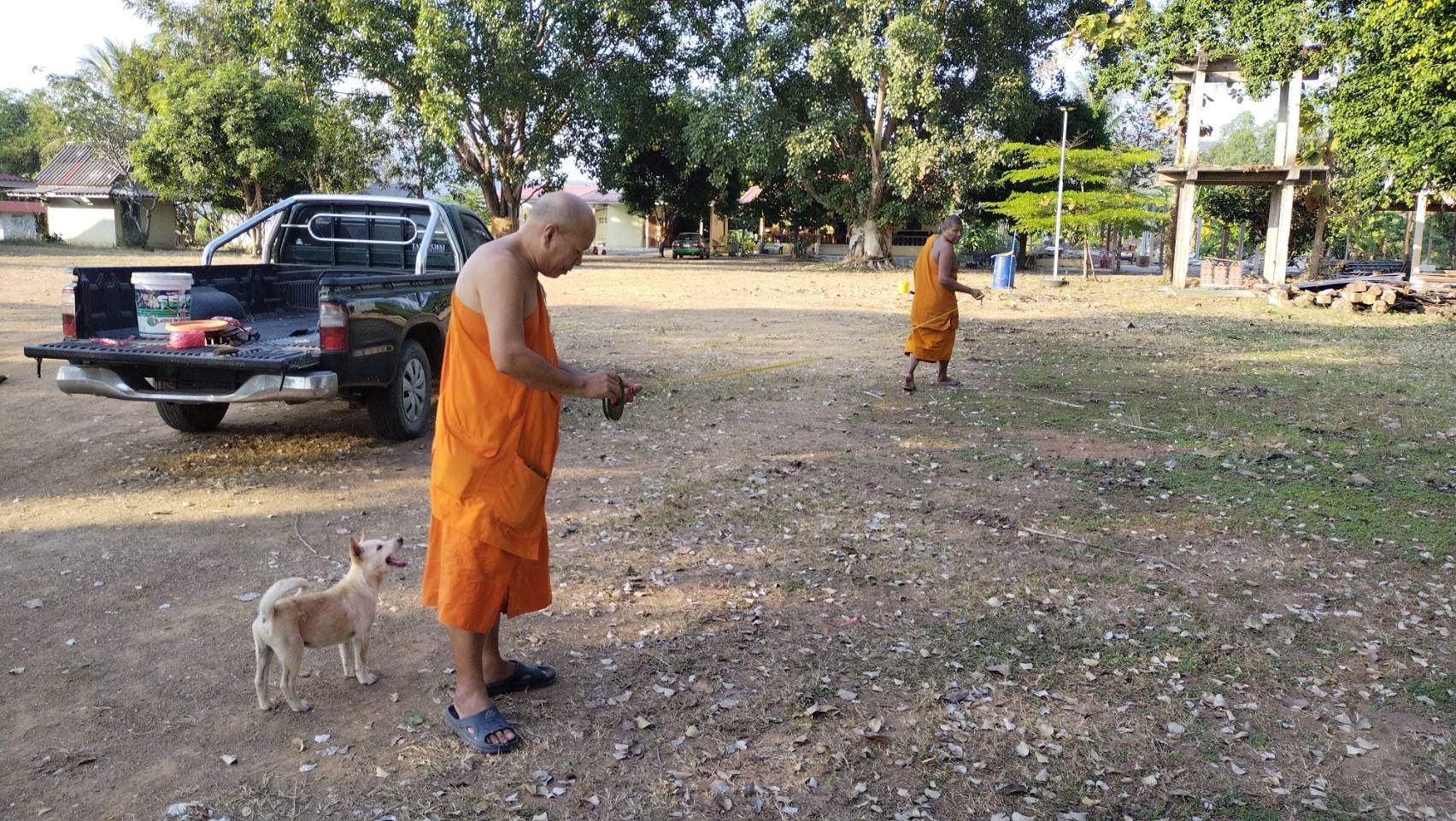 เริ่มหาระยะห่างการปลูกต้นไม้กันครับ ทั้งวัดก็มีพระอยู่ประจำ 2 รูปด้วยกัน ท่านเจ้าอาวาสและพระลูกวัด 1 รุป