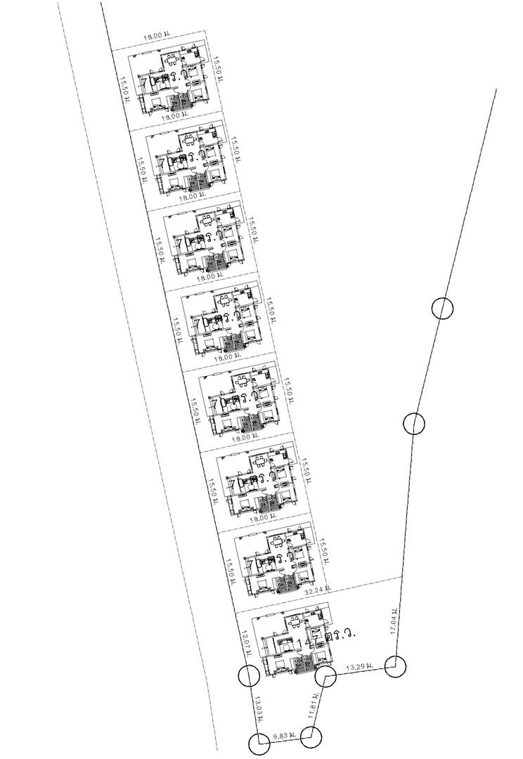 เมื่อได้รูปและขนาดที่ดินอย่างถูกต้องเราก็มาจัดวางตำแหน่งบ้านก่อนโดยที่ยังไม่คำนึงถึงระบบท่อน้ำทิ้งเนื่องจากเราต้องการรูปไปทำโบวชัวร์เพื่อเริ่มงานขอเงินทุนจากแหล่งทุนที่เราหาได้ เราก็เริมแบ่งขนาดที่ดินว่าบ้านหลังนี้ขนาดเท่าไร ที่เราจะสร้างขาย และก็แบ่งที่ดินออกจากขนาดตัวบ้าน โดยบ้านหลังนี้เมื่อเชคเรื่องระยะร่นต่าง ๆ ตาม พรบ. ควมคุมอาคารแล้ว ก็จะได้ขนาดที่ดินราว ๆ 70 ตารางวากำลังสวยเลย อยู่แล้วไม่อึดอัด