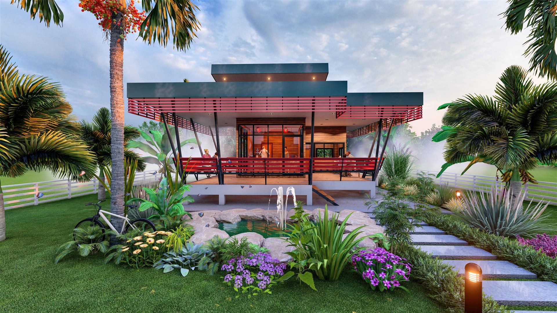 .ความกว้างของตัวอาคาร 8 เมตร ความลึก 8.5 เมตร ยกพื้นสูงราว ๆ 1เมตร เพื่อชมสวนรอบอาคาร มีระเบียงสำหรับทานกาแฟและอาหาร ทั้ง 3ด้านพร้อมม้านั่งสำหรับนั่งพิงพักผ่อน