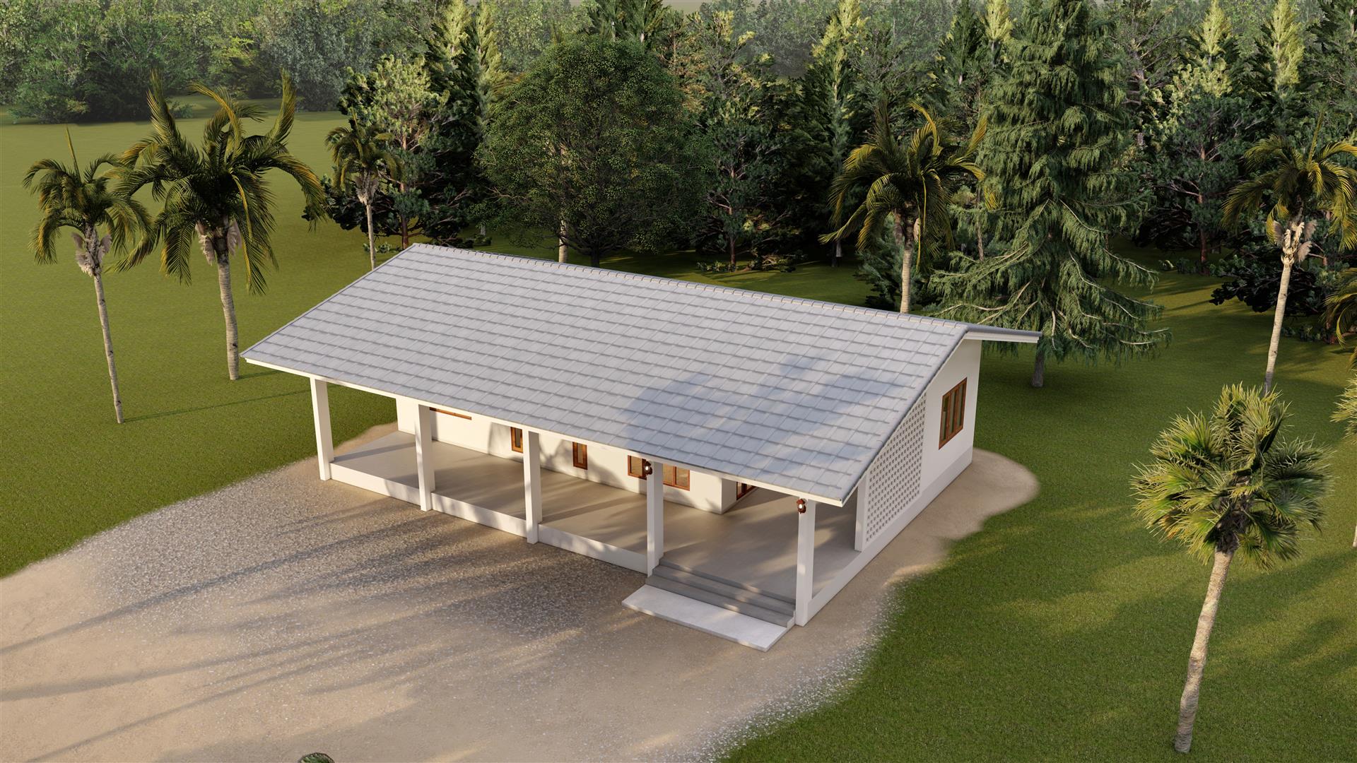 ด้วยความที่เจ้าของบ้านต้องการบ้านที่มีพื้นที่ใช้สอยตามต้องการและไม่ได้ต้องการความสวยงามหรือตกแต่งให้สิ้นเปลืองงบประมาณมากเจ้าของบ้านจึงตกลงรูปแบบบ้านอย่างที่เห็นดังภาพที่แสดงให้ทุกท่านได้ดูกัน เริ่มตั้งแต่ทรงหลังคาที่เรียบง่าย ไม่ซับซ้อนการดูแลก็ง่าย อายุการใช้งานก็ยาวนานกว่าแบบหลังคาซับซ้อนเนื่องจากไม่มีนกขนกิ่งไม้มาทำรัง ทำให้หลังคาสะสมความสกปรกและหลังคาเสียหายได้ง่าย