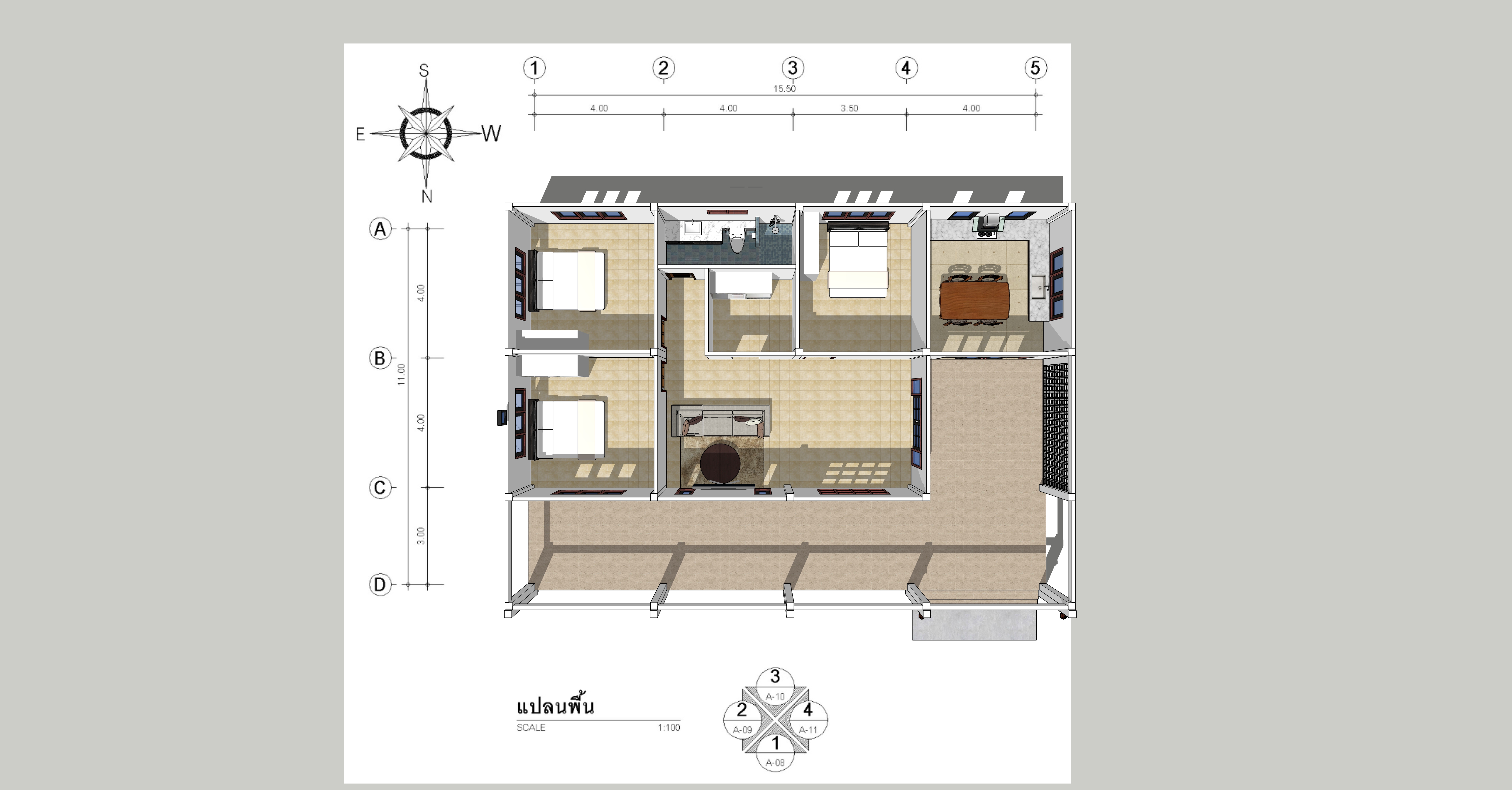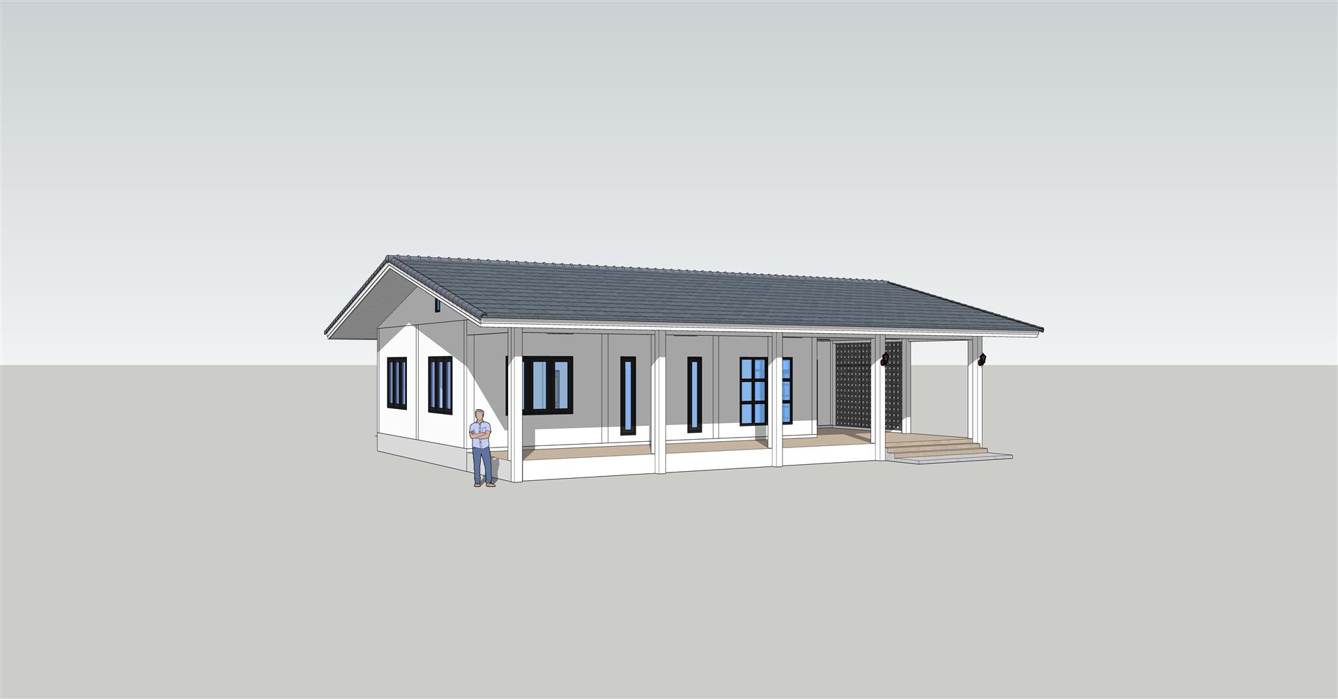 งานเขียนแบบและออกแบบบ้านชั้นเดียว 3ห้องนอน 1ห้องน้ำ ตามความต้องการของลูกค้าจากบ้าน 2 ชั้นด้วยเหตุผลไม่กี่ข้อที่เปลี่ยนใจเหลือเพียงบ้านชั้นเดียว เนื่องจากเจ้าของบ้านเห็นบ้าน 2 ชั้นแล้วอยากได้ แต่การใช้งานจริง ๆ แล้วบ้าน 2 ชั้นนั้นไม่มีใครอยากเดินขึ้นบันไดเพราะขนาดเราเด็กหนุ่มยังไม่อยากเดินขึ้นเลย เวลาแก่ชราลงยิ่งไม่อยากขยับร่างกายกันเท่าไรนัก และด้วยเหตุผลอีก1ข้อคือ เจ้าของบ้านมีที่ดินเพียงพอต่อการทำบ้านขนาดไหนก็ได้เพราะมีที่ดินกว้างขวาง การทำบ้านชั้นเดียวตามฟังชั่นที่ต้องการนั้นจึงไม่เป็นอุปสรรค และเพียงเหตุผลแค่ 2 ช้อนี้ก็เปลี่ยนจากบ้าน 2ชั้นมาเป็นชั้นเดียวในทันที