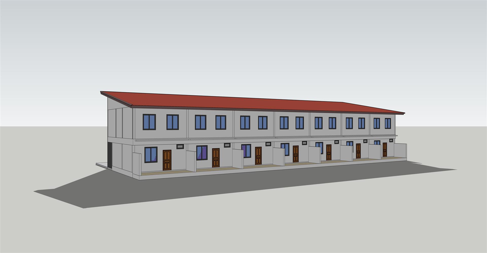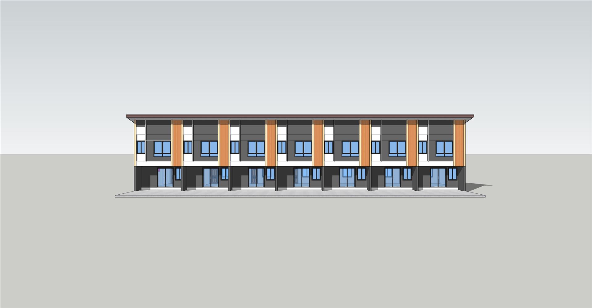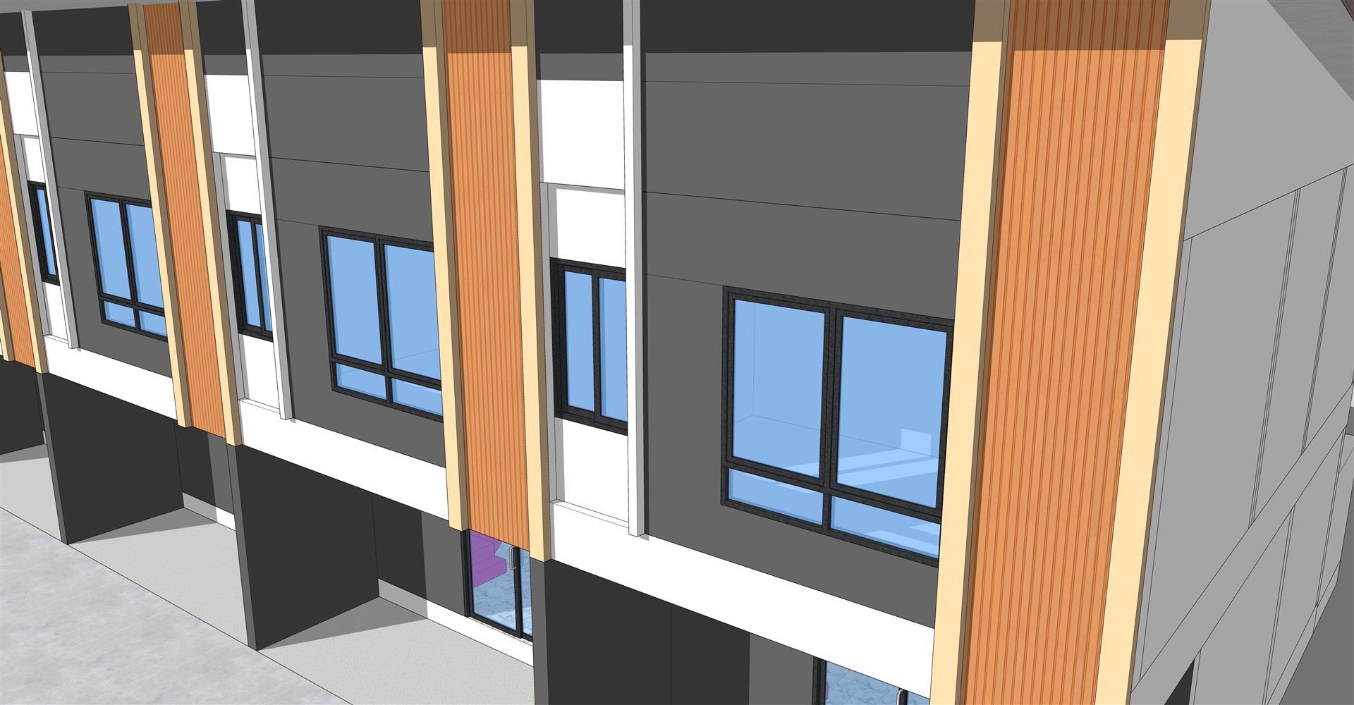 งานเขียนแบบบ้านแถวขนาด 5.5x9 ม.ปลูกสร้างติดกันจำนวน 7ห้องอาคารแบบนี้แอบซ่อนความซับซ้อนของอาคารไว้ เนื่องจากปัญหาเรื่องพื้นที่ใช้สอย กับขนาดของตัวอาคารทำให้การเขียนแบบต้องใส่ใจเรื่องบันไดเป็นพิเศษเพื่อให้สามารถใช้งานบันไดได้อย่างสมบูรณ์